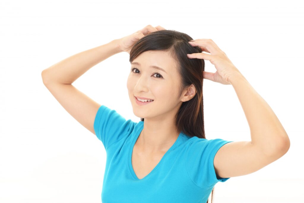 生え際の真ん中から頭頂部に向かってマッサージします。前頭筋は、目を見開いたり、眉毛を上げ下げしたりしているので、額のケアにつなげることができます。