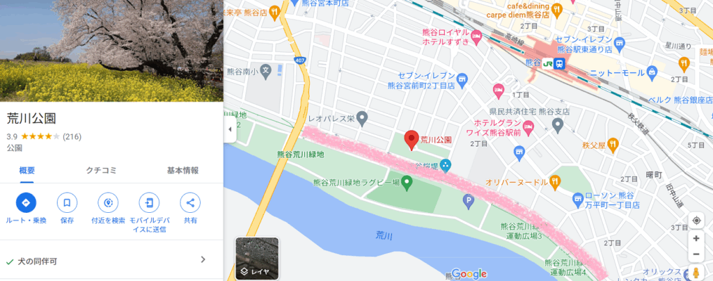 場所は、熊谷駅から徒歩5分の荒川公園の荒川沿いの土手下です。荒川公園を目指して行きます。